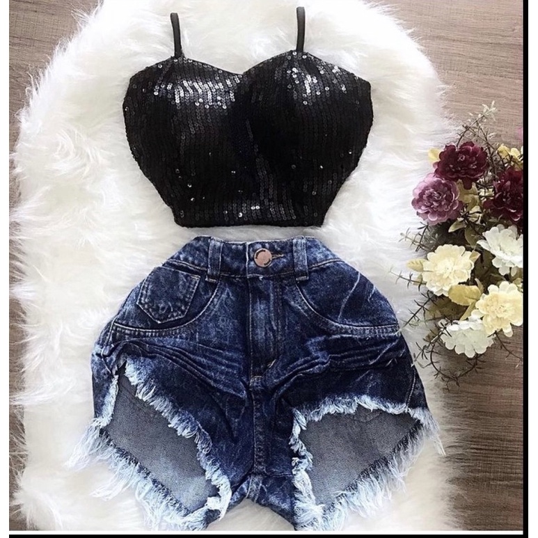 Cropped com shop short jeans